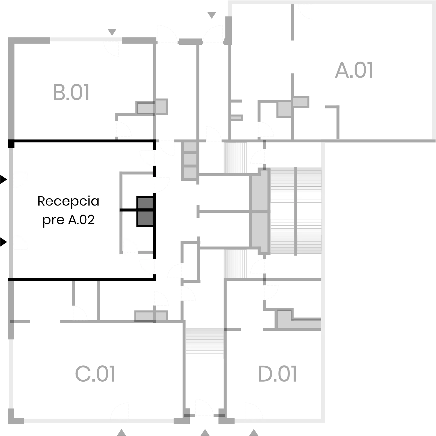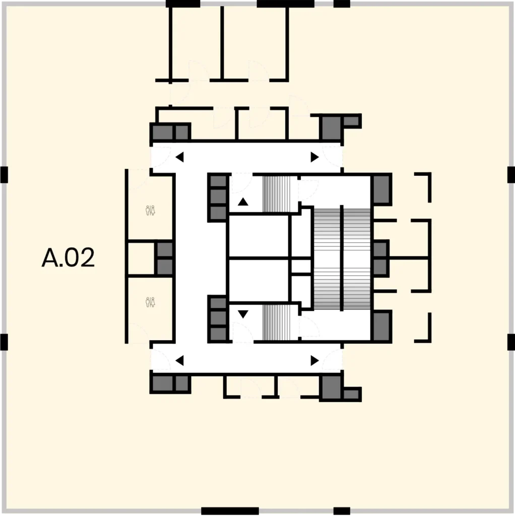 Priestor A.02 je veľkorysý, začínajúci na prízemí s s vlastnou recepciou určenou len pre tento priestor. Prístup na druhé poschodie je zabezpečený výťahom alebo schodami. Administratívny priestor na tomto podlaží má panoramatický výhľad a umožňuje budúcemu majiteľovi navrhnúť si vlastné rozdelenie a usporiadanie.
