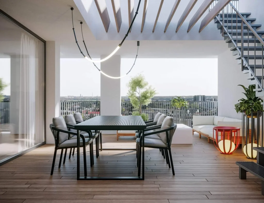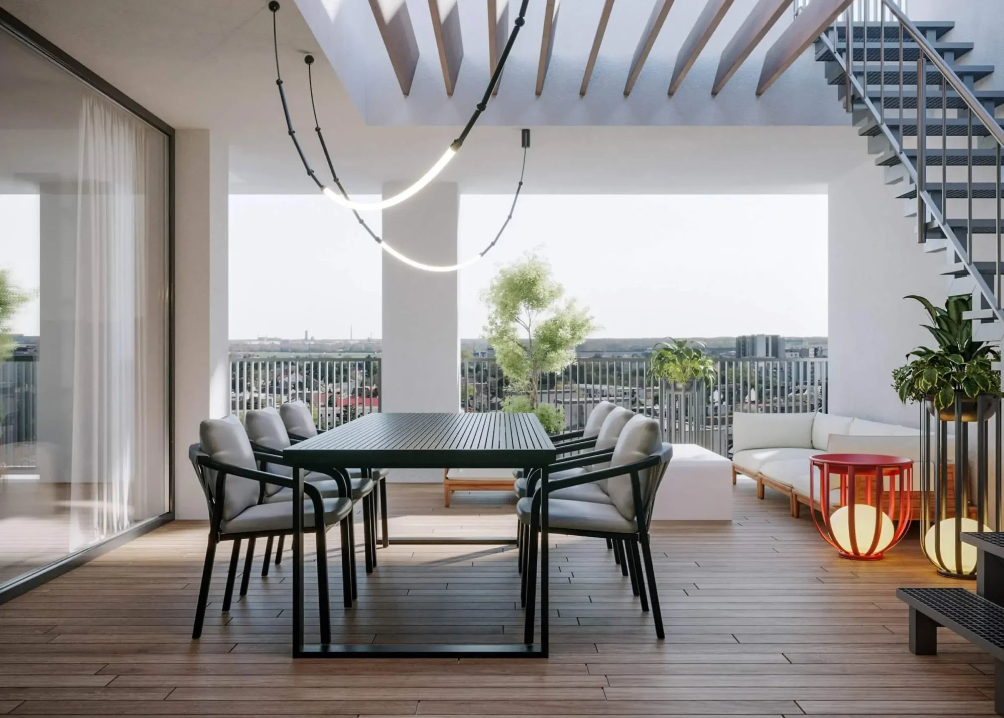 Jeden z iba dvoch exkluzívnych penthouseov, orientovaný na západ, ponúka veľkolepé výhľady na panorámu Bratislavy, majestátny Dunaj aj siluety Rakúska. Súkromie, priestor a atmosféra, ktorá robí z každého dňa zážitok.