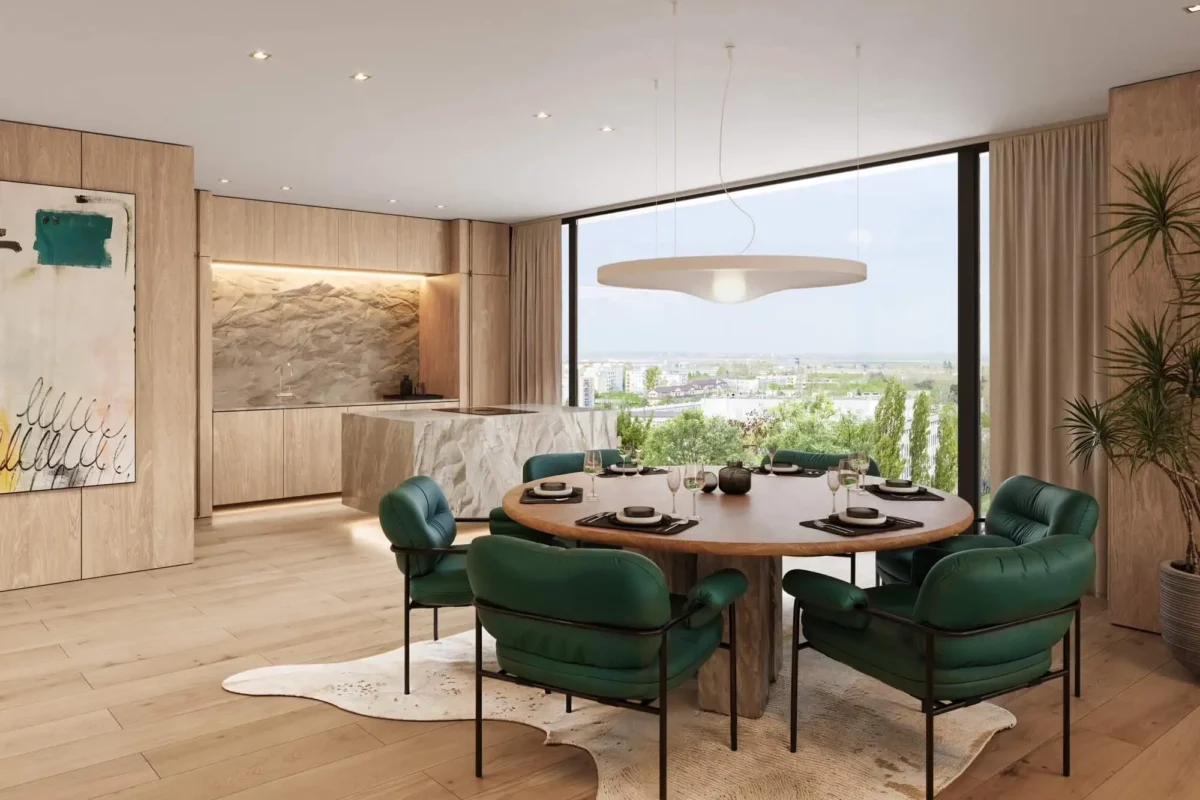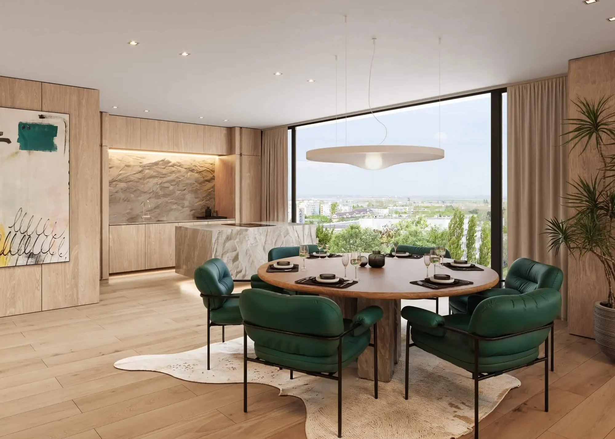 Penthouse poskytuje nerušené panoramatické výhľady na Bratislavu a priľahlé Rakúsko. Každé ráno aj večer sa stane jedinečným zážitkom vďaka premenlivej scenérii priamo pred vašimi očami