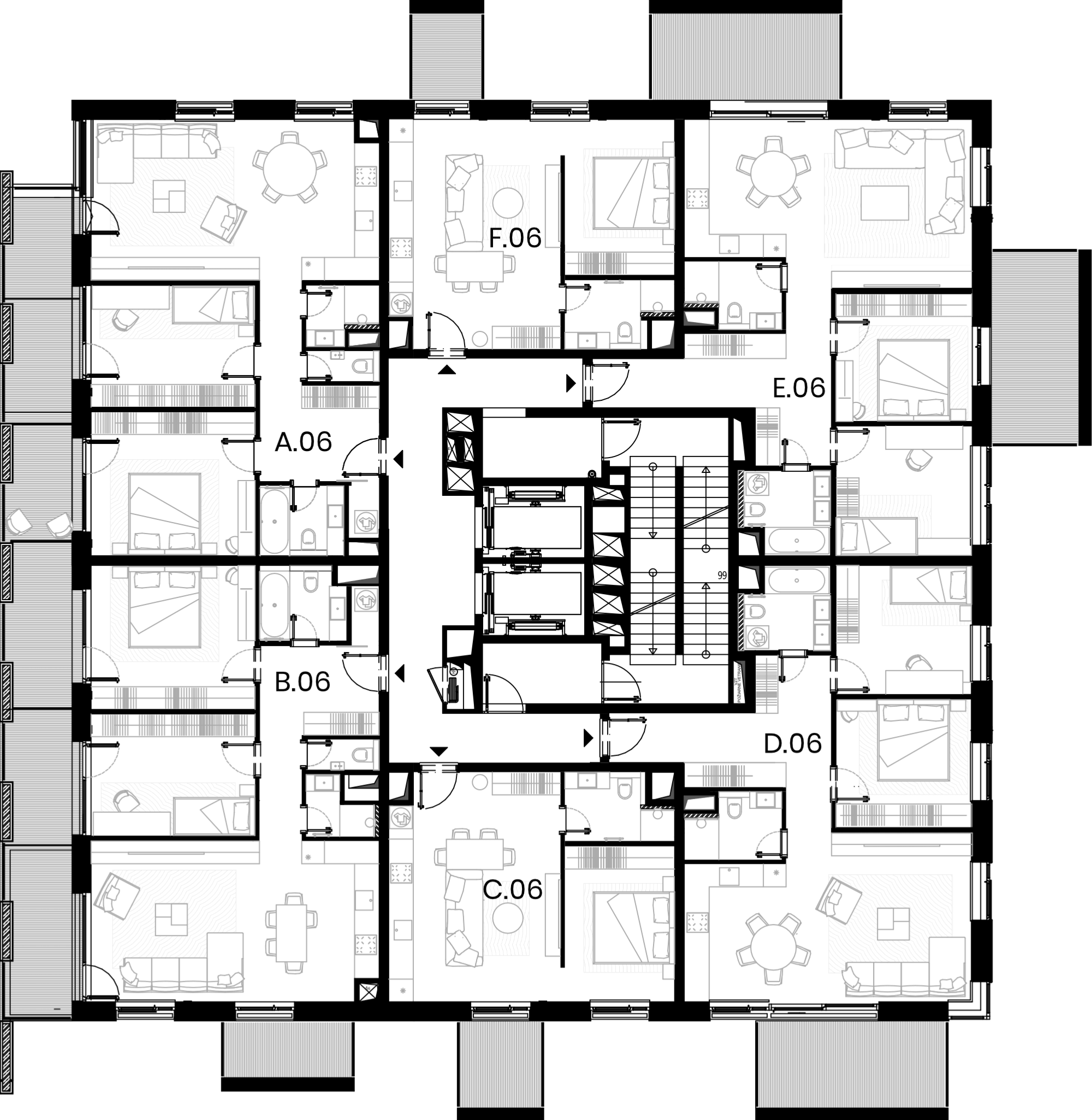| 6 | E.06 | 3 | 79.93 m2 | 23.05 m2 | 0 € | rezervovaný |