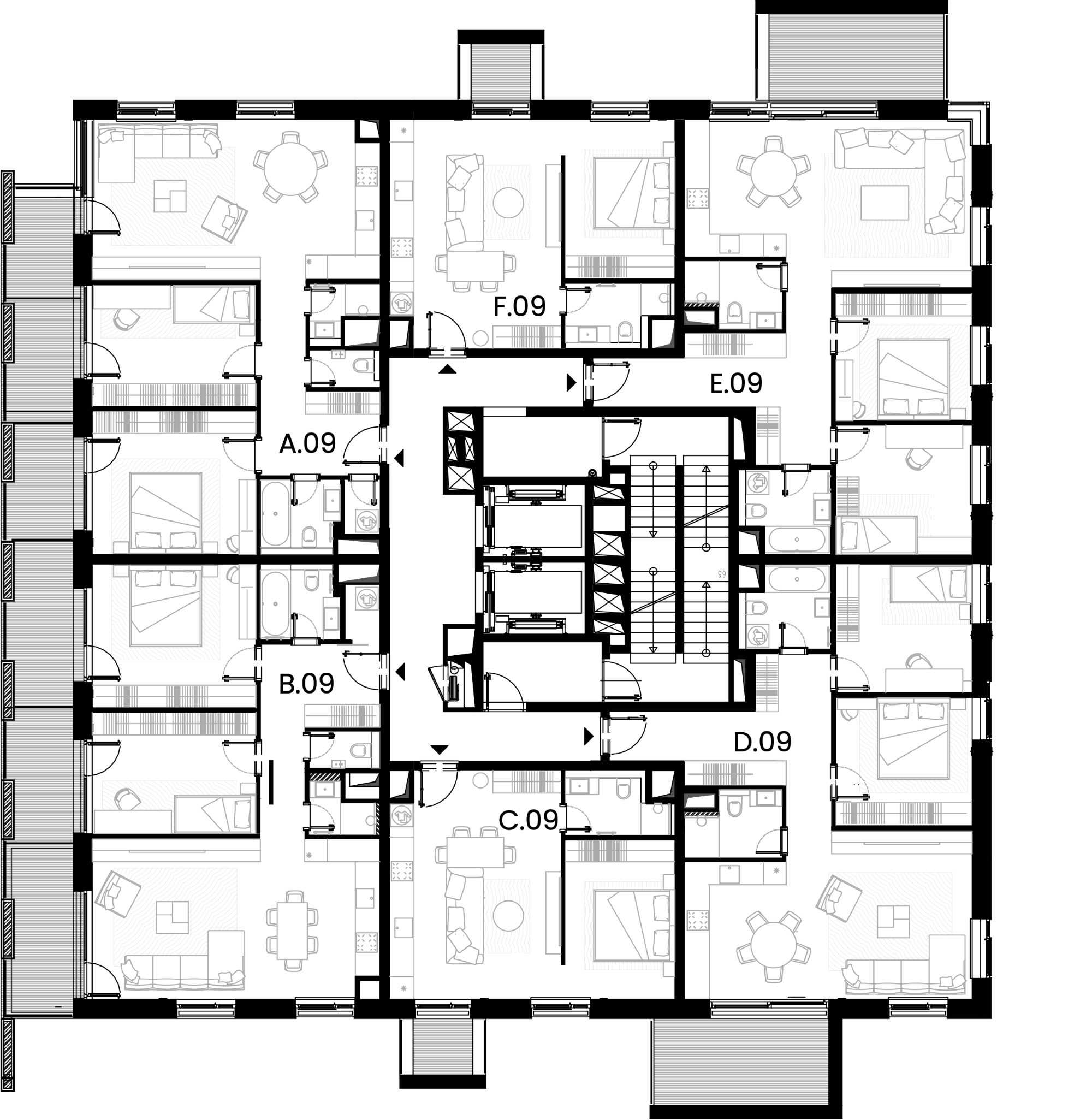 | 9 | B.09 | 4 | 126.50 m2 | 28.56 m2 | - | neponúka sa |